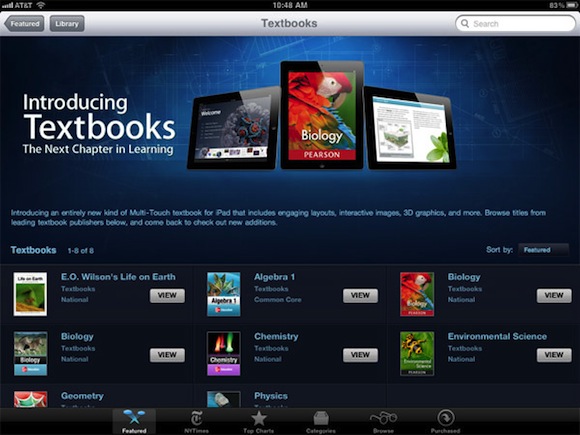 “Education is deep in Apple’s DNA and iPad may be our most exciting education product yet. With 1.5 million iPads already in use in education institutions, including over 1,000 one-to-one deployments, iPad is rapidly being adopted by schools across the US and around the world,” said Philip Schiller, Apple’s senior vice president of Worldwide Marketing. “Now with iBooks 2 for iPad, students have a more dynamic, engaging and truly interactive way to read and learn, using the device they already love.”